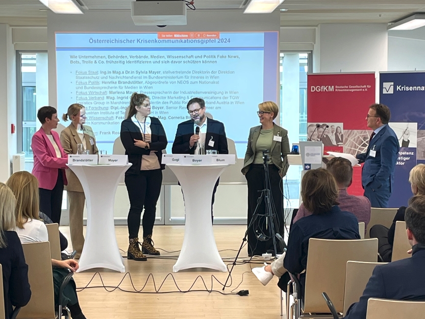 Der Umgang mit solchen Angriffen stellt Kommunikationsverantwortliche und Krisenbeauftragte in den betroffene Organisationen vor vielfältige Herausforderungen. Wie können Fake News zeitnah erkannt und richtiggestellt werden? Mittels welcher Maßnahmen gelingt es Organisationen, ihre Beschäftigten wirksam vor Hasskommentaren zu schützen? Welche rechtlichen Möglichkeiten existieren, um sich gegen Rufmord zur Wehr zu setzen? Welche neuen Technologien stehen bereit, um Desinformationen und KI-Manipulationen zu enttarnen?